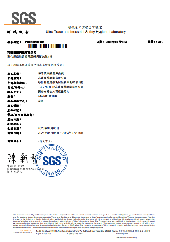 海洋玻尿酸潤澤面膜